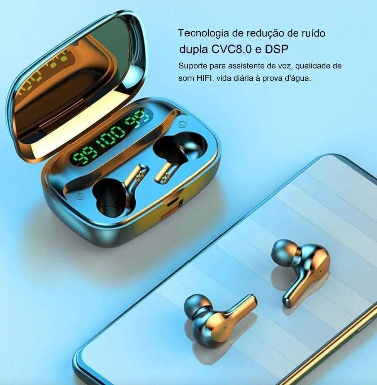 Fone de ouvido Bluetooth, Design Independente, Estojo para carregar, Visualização Digital, Controle por toque, Confortável